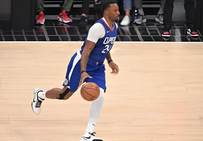 2024-25赛季,鲍威尔在快船打出场均21.8分32篮板2.1助攻,场均出手7.1记三分,命中率高达41.8%,成为残阵快船最稳定可靠的火力输出。